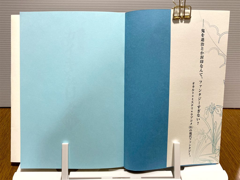 本体の表紙+遊び紙は、カバーイラストのグラデーション部分(青から紫)に合わせてあります。